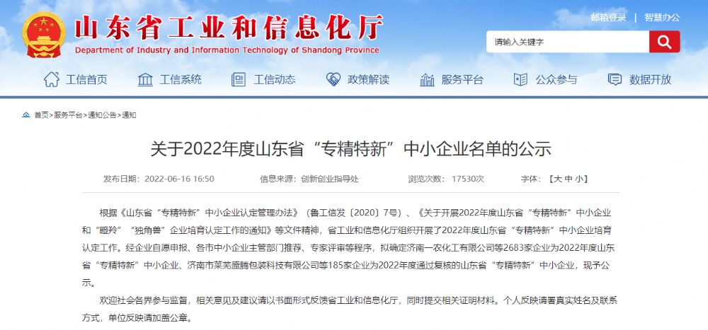祝賀我公司獲得2022年度山東省“專精特新”榮譽(yù)稱號 2022-10-31 本文被閱讀 1109 次